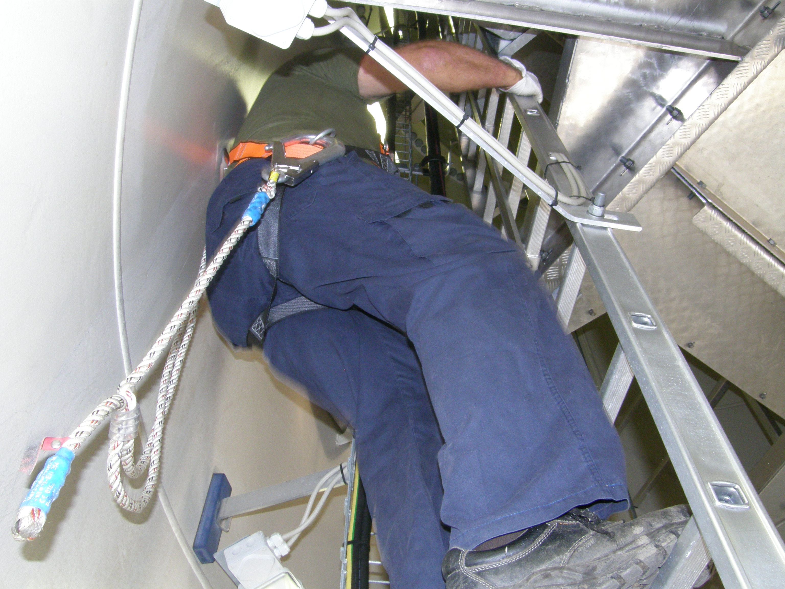 Cesta tubusem do gondoly po žebříku